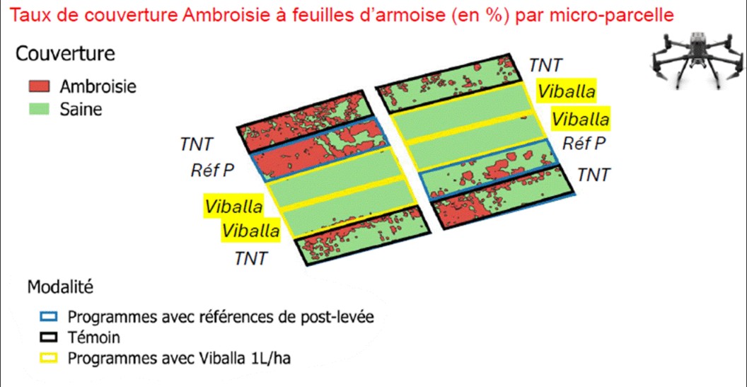 Les expérimentations sur le terrain montrent une action efficace de Viballa contre l’ambroisie, en comparaison avec des programmes de post-levée.