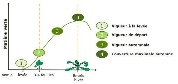 Il existe trois types de vigueur. La vigueur à la levée correspond à la capacité de réduire la durée entre le semis et la levée de la plante. La vigueur de départ concerne la phase entre la levée du colza et le stade 3-4 feuilles, stade essentiel dans la lutte contre les morsures d’altises. Enfin, la vigueur automnale désigne la capacité de la variété à se développer rapidement entre le stade 3-4 feuilles et l’entrée de l’hiver. Cette phase est cruciale car c’est le moment où les larves d’altises d’hiver et de charançon du bourgeon terminal peuvent se développer dans le colza.