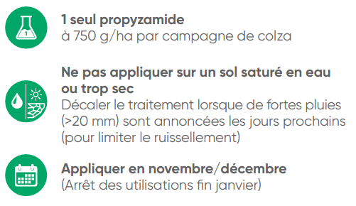 Pour bien utiliser Kerb Flo/Odin, Ielo/Yago/Biwix, l’application se réalise sur un sol humide en novembre/décembre ou avant la fin du mois de janvier sur un sol non saturé en eau. Si de fortes pluies, supérieures à 20 mm, sont annoncées dans les jours qui suivent le traitement, alors il est recommandé de décaler le traitement pour limiter le ruissellement.