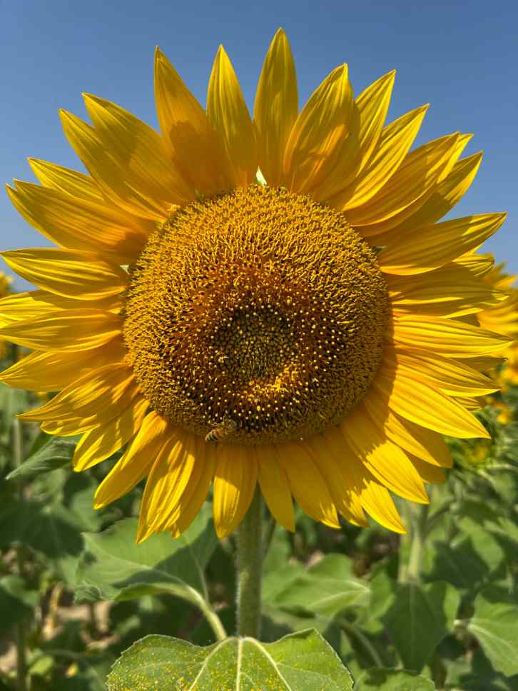 Après un semis démarré en avril–mai avec des températures clémentes (sol >8 °C), la culture de tournesol affiche un cycle optimal pour éviter les stress estivaux.