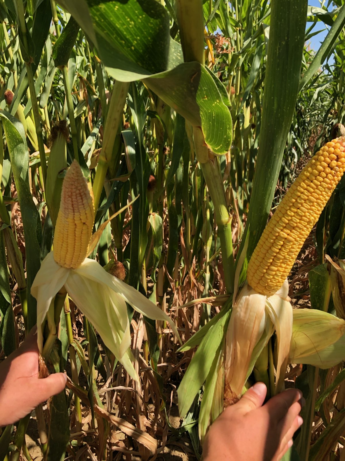 Un avantage considérable par rapport à la génétique corné-denté où les caractéristiques sont définies, c’est-à-dire que les épis auront la même taille quel que soit la densité de semis. « Cette spécificité des dentés permet de sécuriser le rendement, le nombre de grains et la teneur en amidon, même en cas de problèmes climatiques ou sanitaires », explique Loïc Aubry.