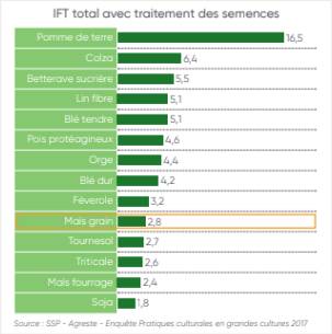 Le maïs fait partie des plantes cultivées possédant un faible IFT, comme le montre ce classement :