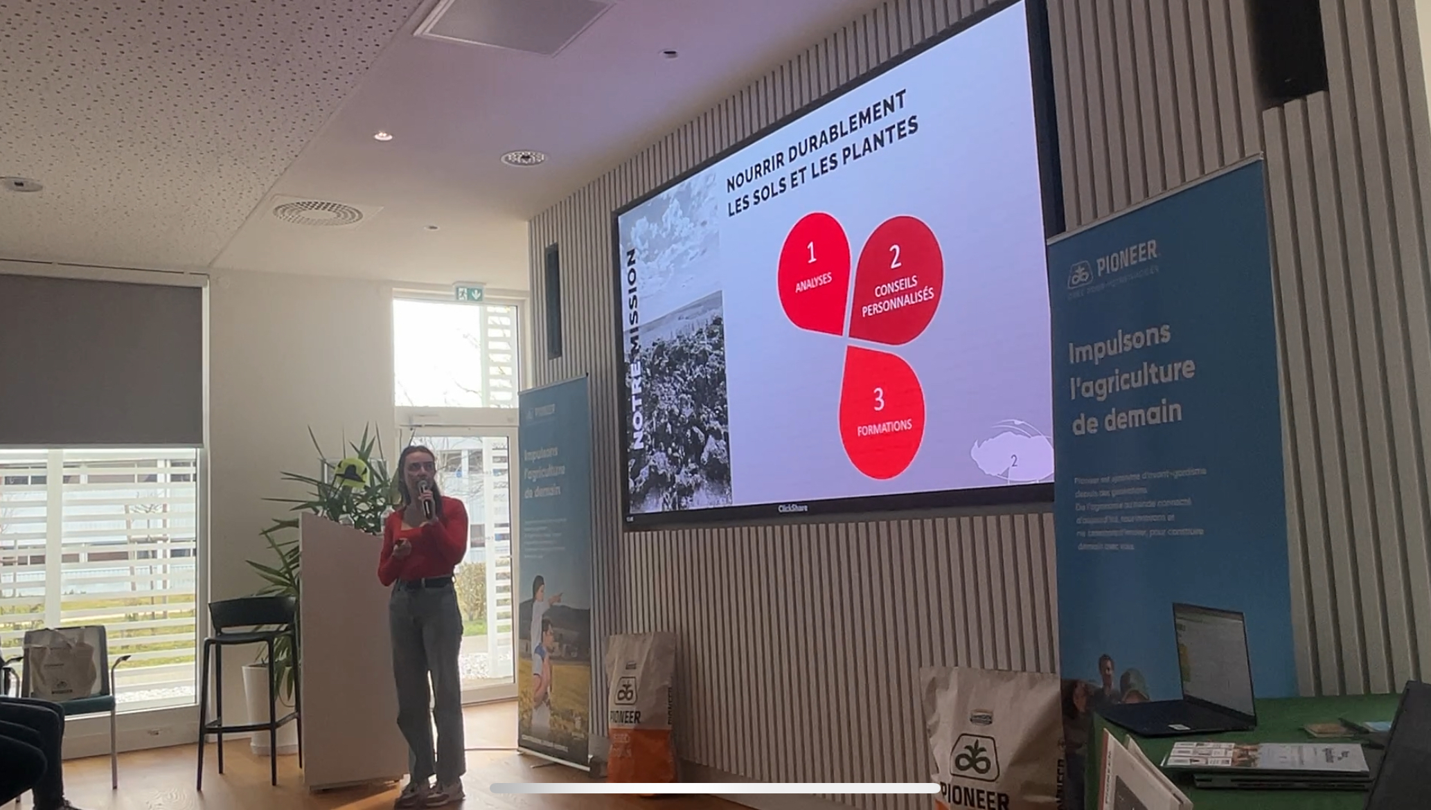 L'après-midi a été consacré à une conférence animée par CelestaLab, portant sur la matière organique des sols. Les participants ont pu mieux comprendre les différentes sources de matière organique, l'interprétation des analyses de sol et les leviers d'action pour améliorer la fertilité de leurs parcelles. Une étude de cas concret a permis d'illustrer ces concepts de manière appliquée, renforçant ainsi l'intérêt des agriculteurs pour une gestion plus précise et efficace de leurs sols.