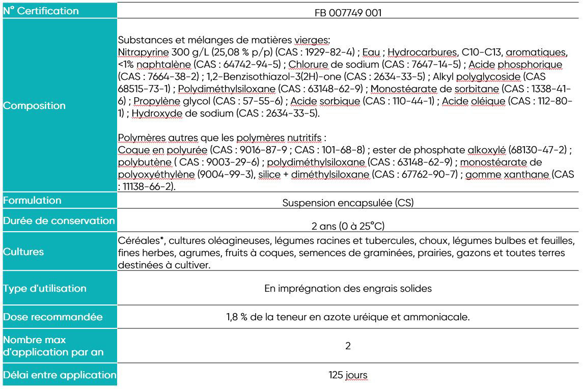 MODE D'ACTION : Stabilisateur d’azote par inhibition du processus de nitrification