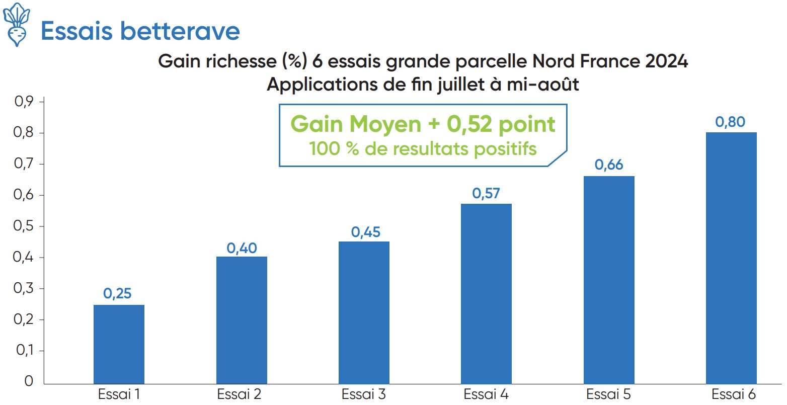 Augmente la richesse en sucre +0,5 point de richesse en moyenne*.
