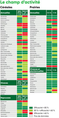 | Prairies permanentes | Dicotylédones | 1.0 L/HA | 1 /an | 14 | 5 | ||