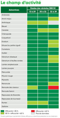 | Seigle de printemps | Dicotylédones | 0.5 L/HA | 1 /an | 13 | 39 | DAR F | 5 |