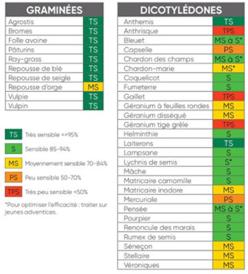 Avant toute utilisation, assurez-vous que celle-ci est indispensable. Privilégiez chaque fois que possible les méthodes alternatives et les produits présentant le risque le plus faible pour la santé humaine et animale et pour l'environnement, conformément aux principes de la protection intégrée, consultez http://agriculture.gouv.fr/ecophyto. Pour les usages autorisés, doses, conditions et restrictions d’emploi : se référer à l’étiquette des produits et/ou sur www.phytodata.com.