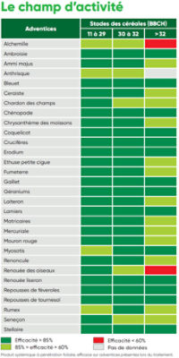 | Seigle de printemps | Dicotylédones | 1 L/HA | 1 /an | 13 | 45 | DAR F | 5 |