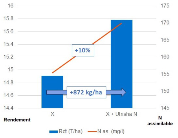 Synthèse des résultats d’expérimentation menées en France en 2023, en conditions de fertilisation égales, sur 19 essais.
